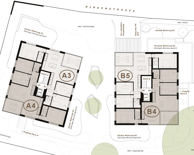 DIE WOHNUNGEN "IM REBGARTEN" WERDEN MIT DEN GLEICHEN HOCHWERTIGEN MATERIALIEN UND DEM UNVERGLEICHLICHEN DESIGN UMGESETZT.